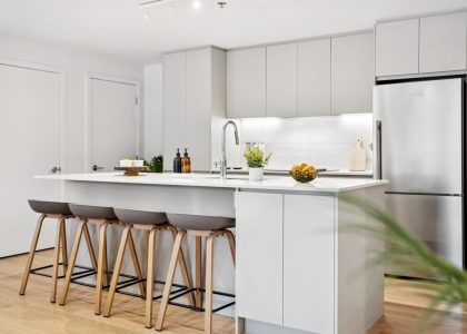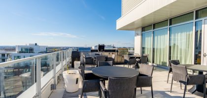 Welcome to the penthouse level! This bright and modern corner unit boasts panoramic views of Mount Royal and Montreal’s stunning historic churches through floor-to-ceiling windows